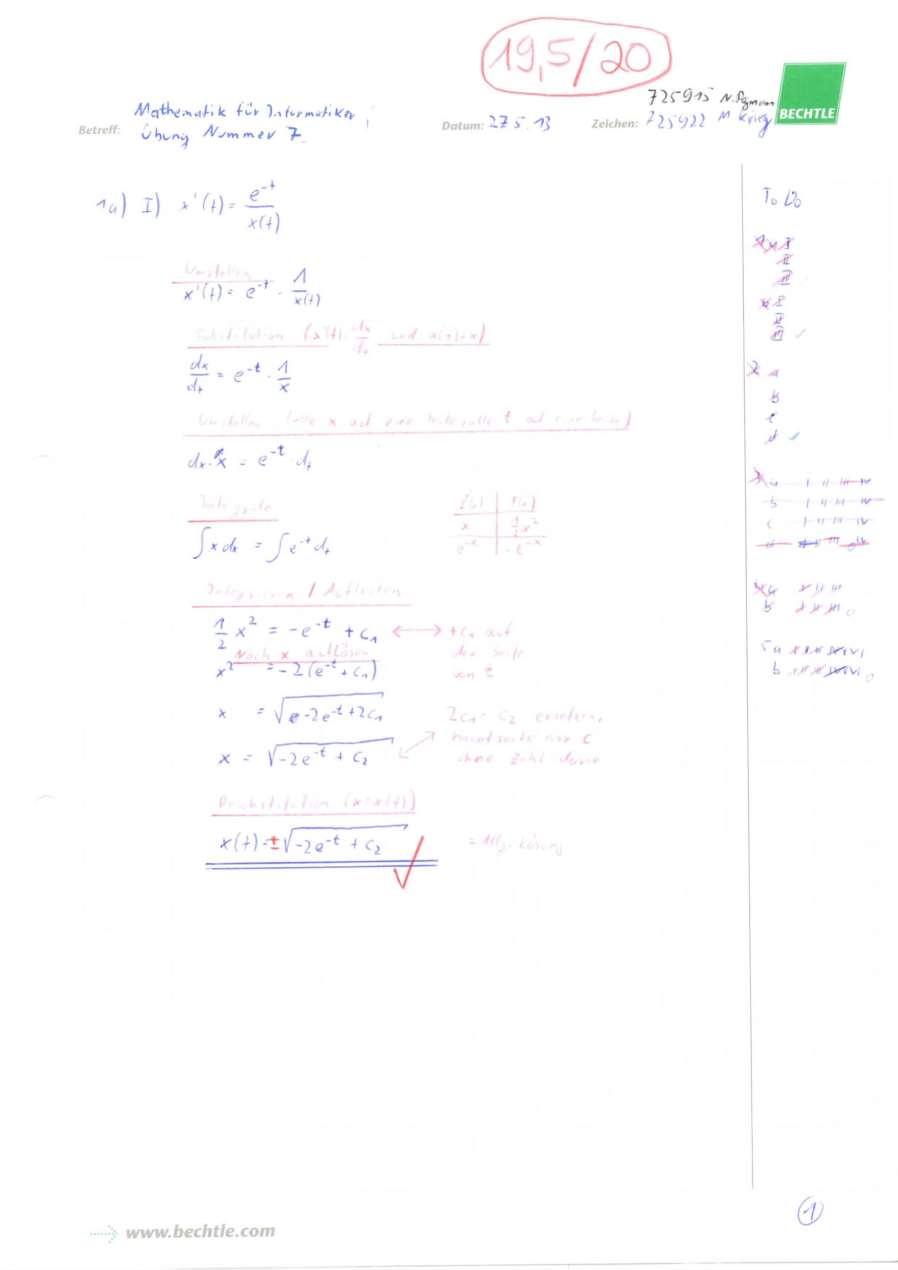 In der siebten Übung habe ich 19,5 von 20 erreichbaren Punkten erlangt.