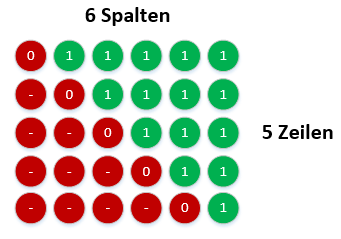 - Es gibt n-1 Zeilen und n Spalten