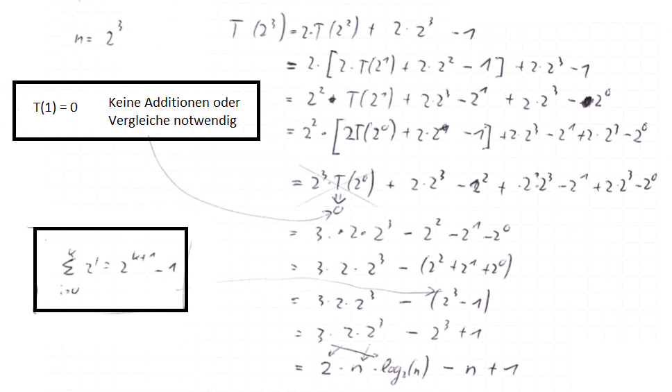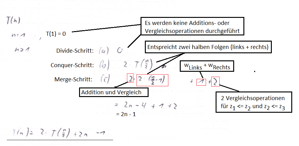- T(n) ist die Anzahl der Additionen und Vergleiche