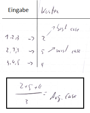 - Der average case orientiert sich an einem gleichverteilten Erwartungswert von \( \frac{1}{\text{Eingaben } E_n} \)