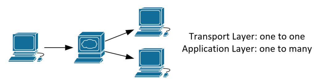 - Je nachdem auf welcher Netzwerkschicht man sich befindet, kann die Adressierung von Nachrichten anders adressiert werden (Verteilung von Nachrichten an Gruppen durch Anwendungen)