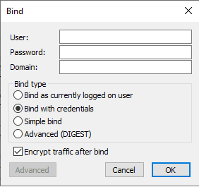 | Connection / Bind | Verbindung zu LDAP-Server herstellen (DC-Name, Port, SSL) und Benutzeranmeldung (Simple/SSPI/mit Credentials) | Verbindungstest zu dc01.contoso.local |